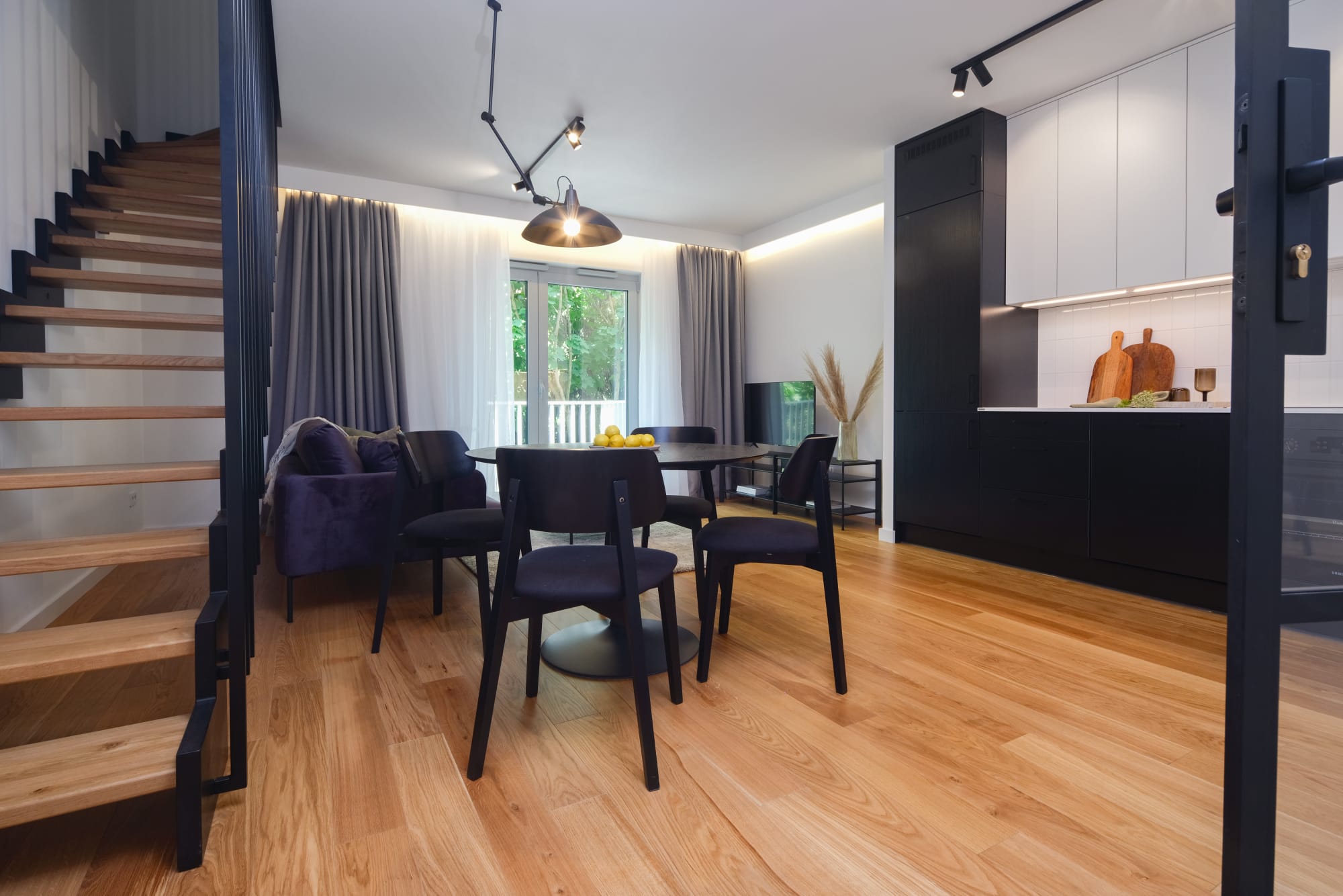 - Drewno dobrze komponuje się z metalem i szkłem, dzięki czemu świetnie sprawdza się w aranżacji wnętrz.